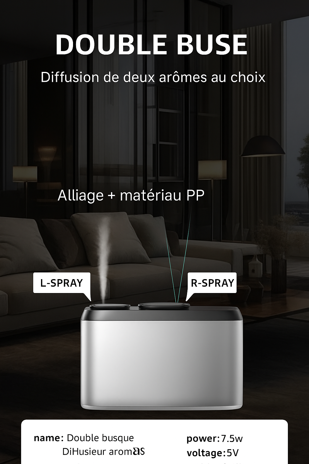✅ Double réservoir 2 × 50 ml – Diffusion longue durée, parfaite pour les grandes pièces.